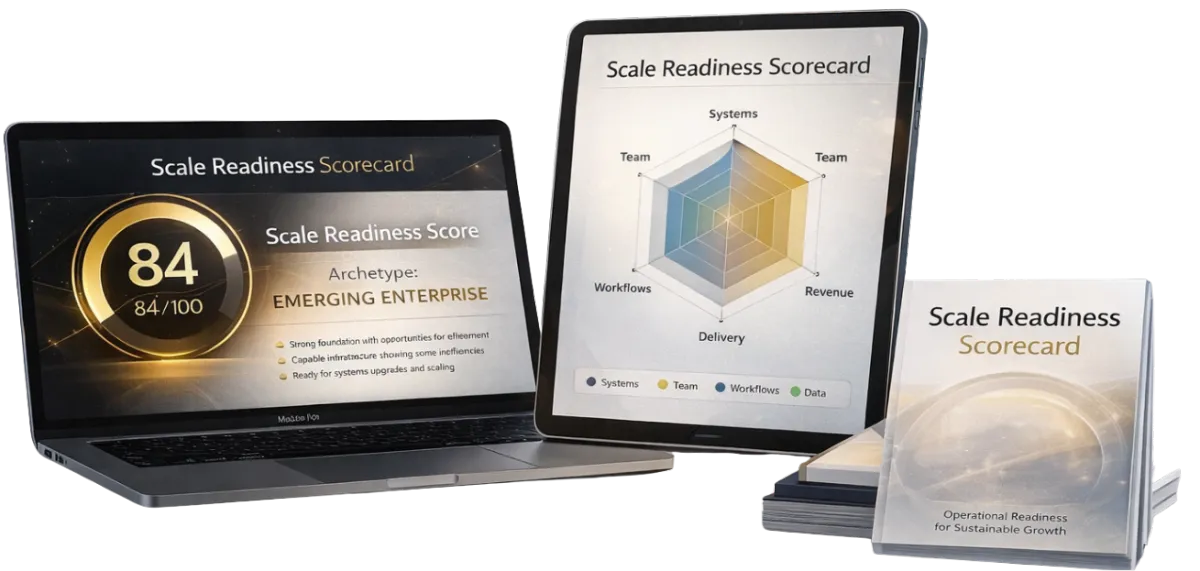 Your next level starts with clarity. Take the Scale Readiness Scorecard and uncover what’s helping — and hurting — your ability to scale.